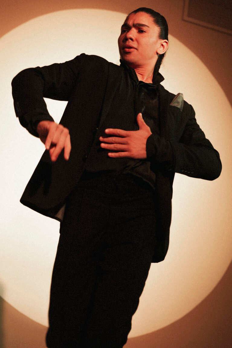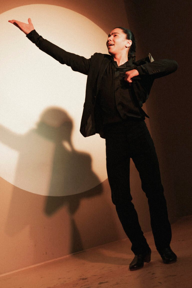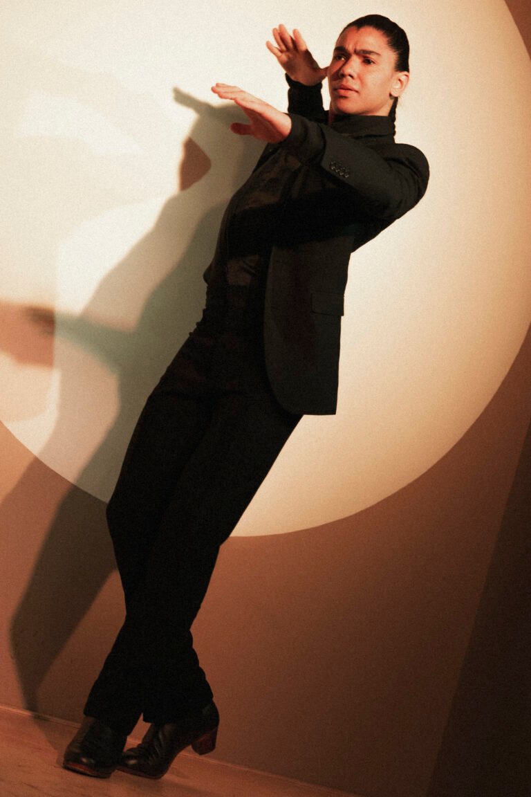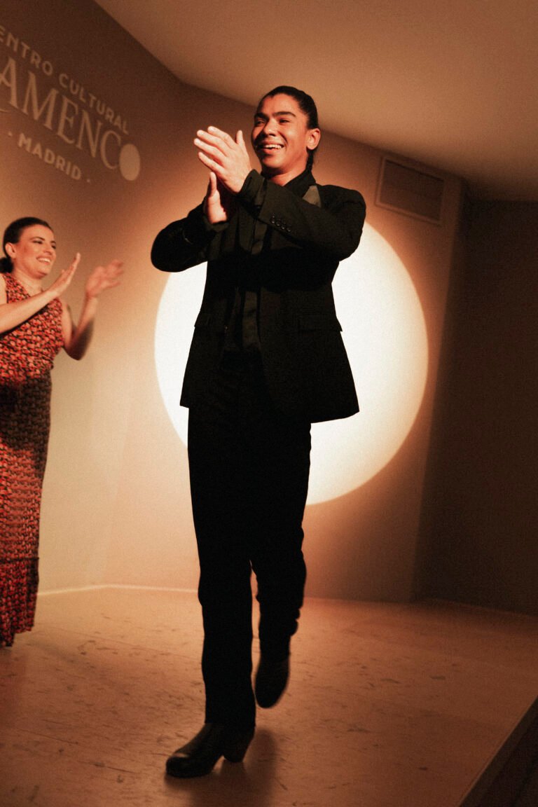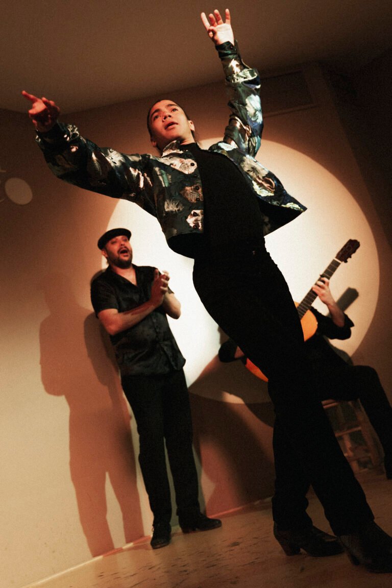 Bailaor y coreógrafo brasileño, Gabriel Matías destaca por la madurez y elegancia de su danza, donde fusiona la fuerza del flamenco actual con la pureza de las líneas clásicas. Nacido en Porto Alegre, inició su formación a los 11 años y desarrolló una sólida trayectoria en Brasil antes de trasladarse a Madrid en 2015. Allí obtiene el Título Superior en Pedagogía del Baile Flamenco en el Conservatorio María de Ávila.